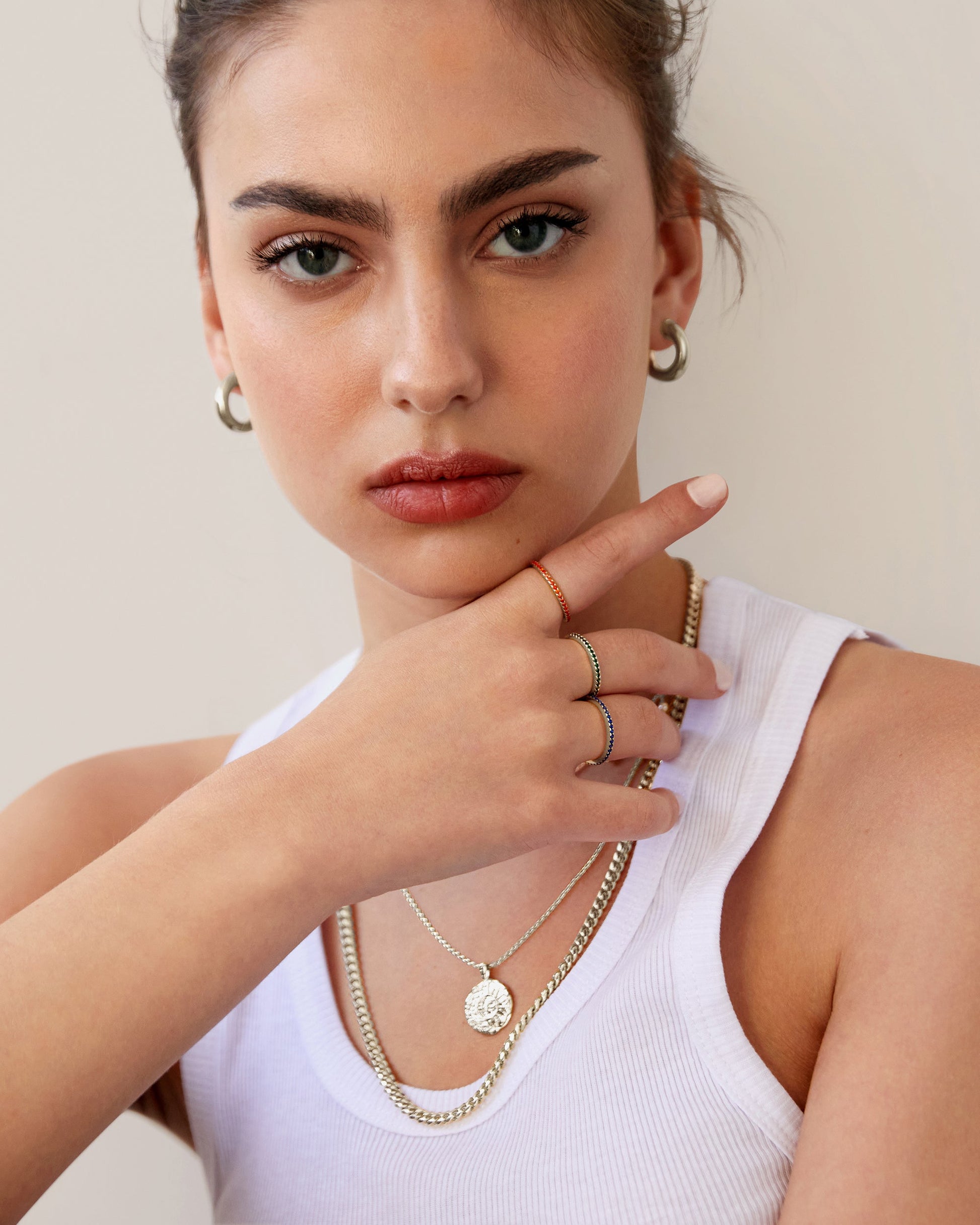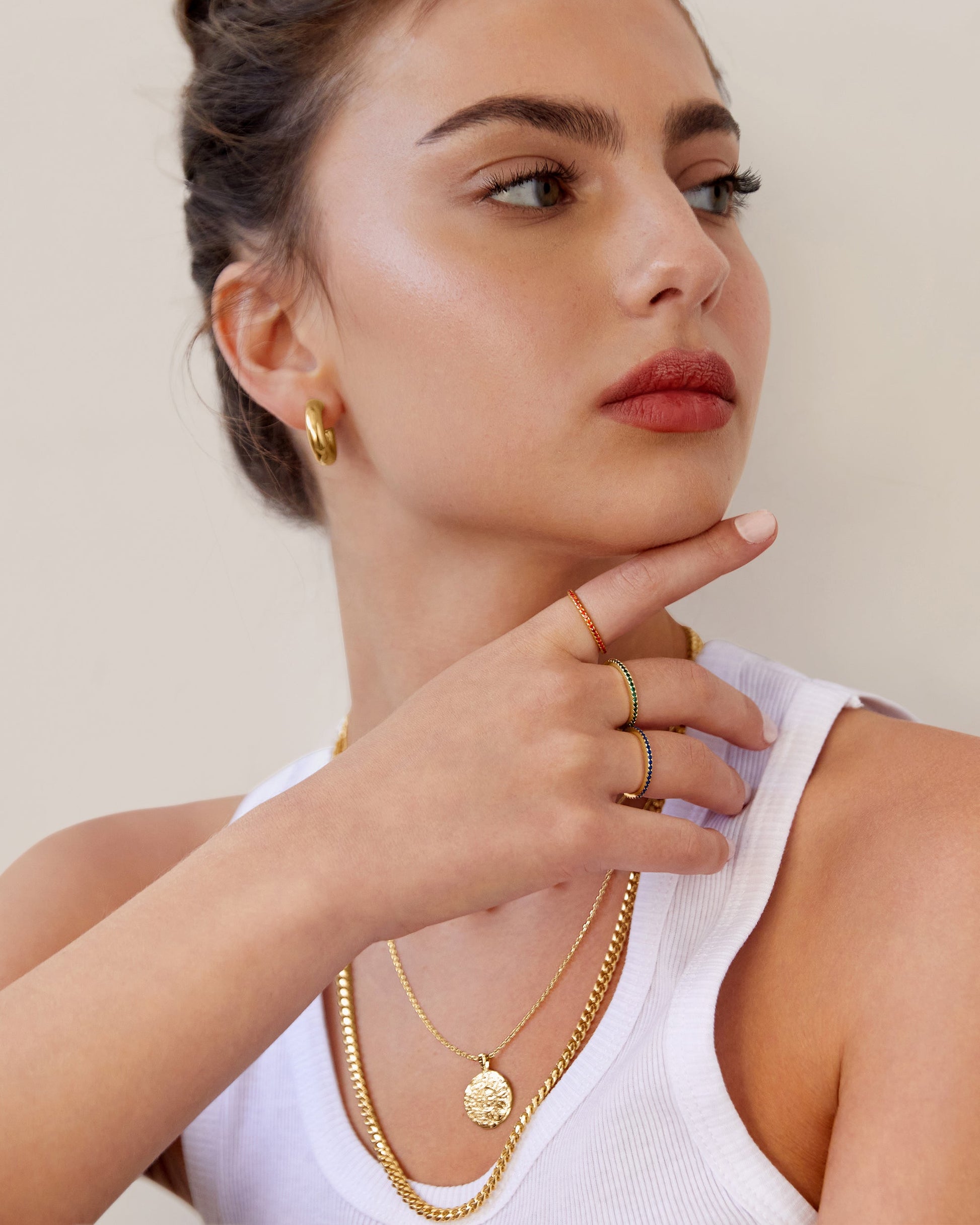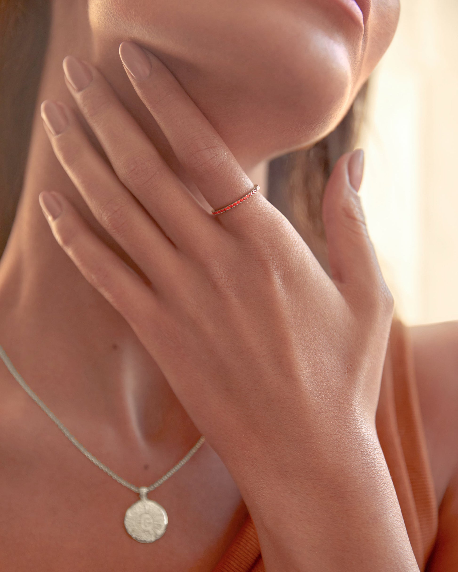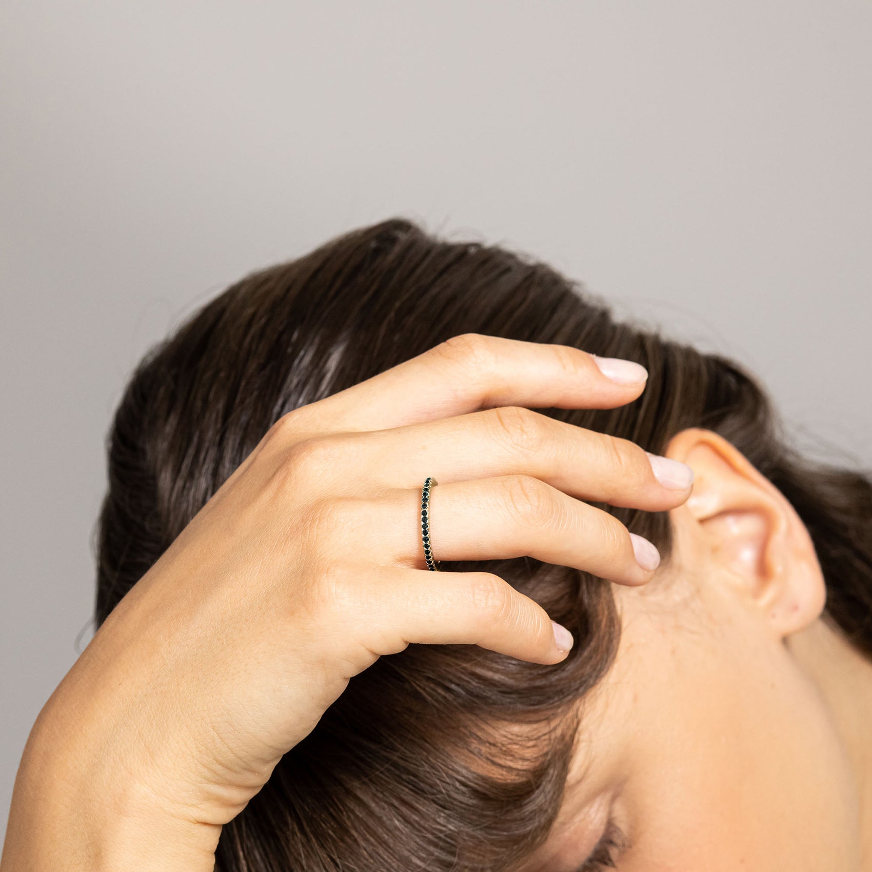 Complete your ring stack with our Mila Eternity Band. Super dainty and fashion forward, this style looks amazing stacked in and around your other favorite rings. For a trendy look try wearing this band on your thumb.