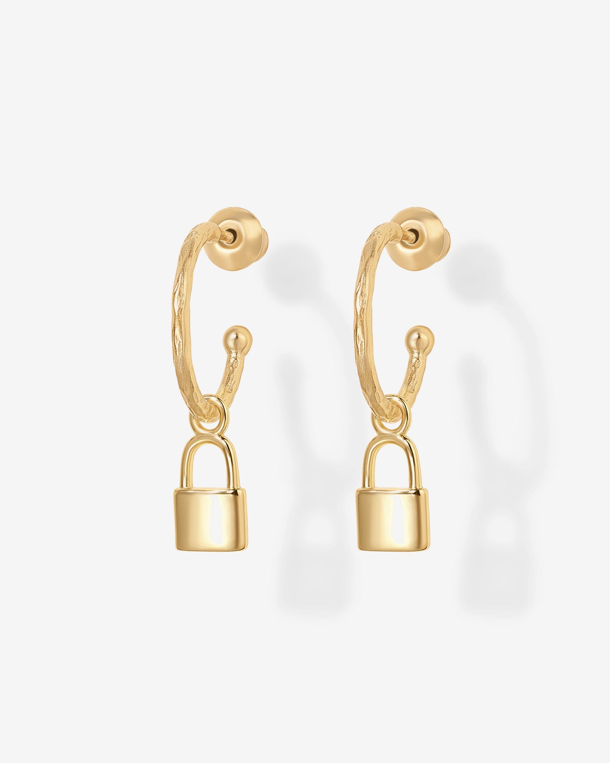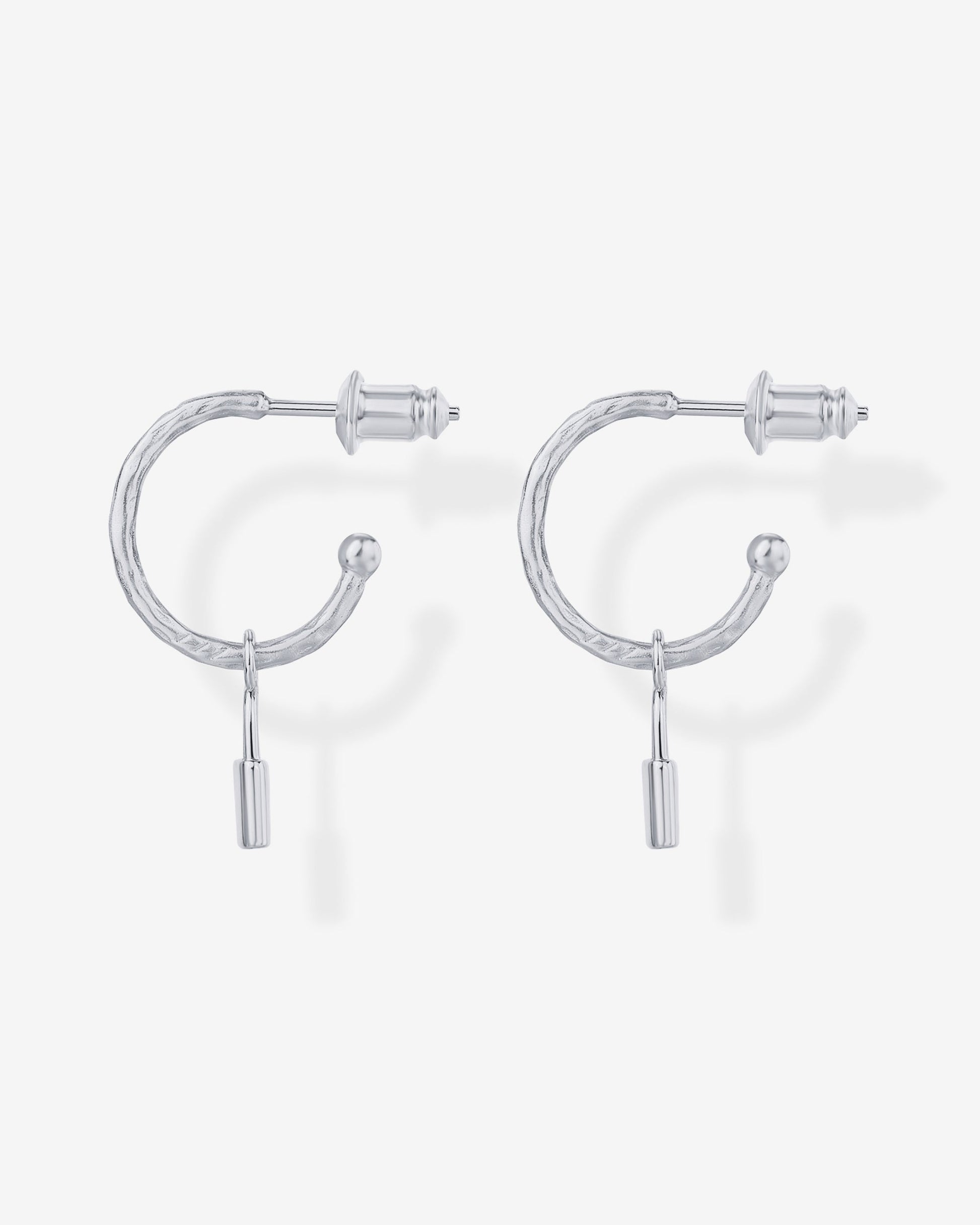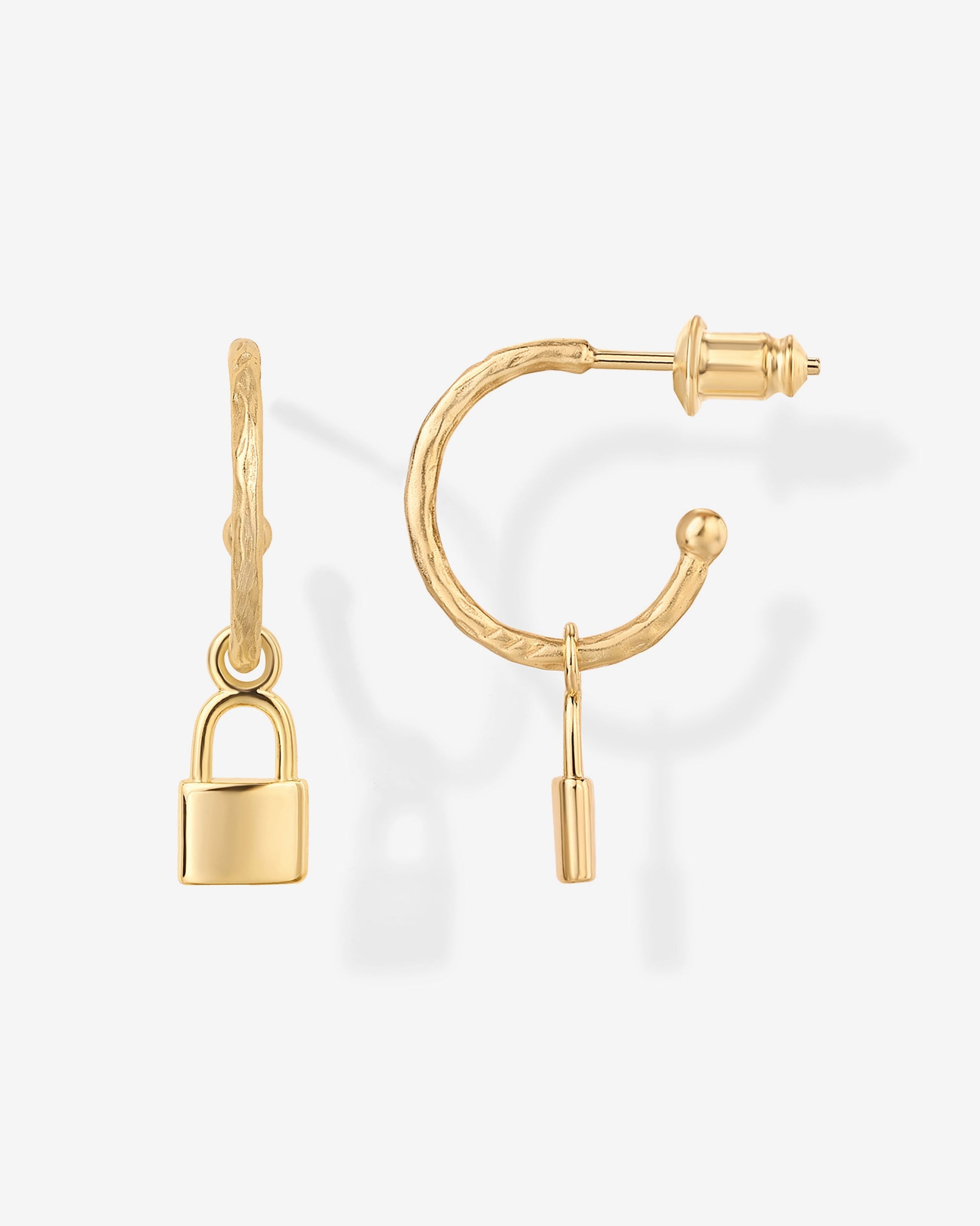 Dangling, sparkling, chic. These PAVOI 14K gold-plated huggies with 925 sterling silver posts, a lock dangle, and hammered texture blend beautiful craft and on-trend styling. The perfect small hoop earrings with posts, these trendy dangle hoop earrings will be your new favorites.