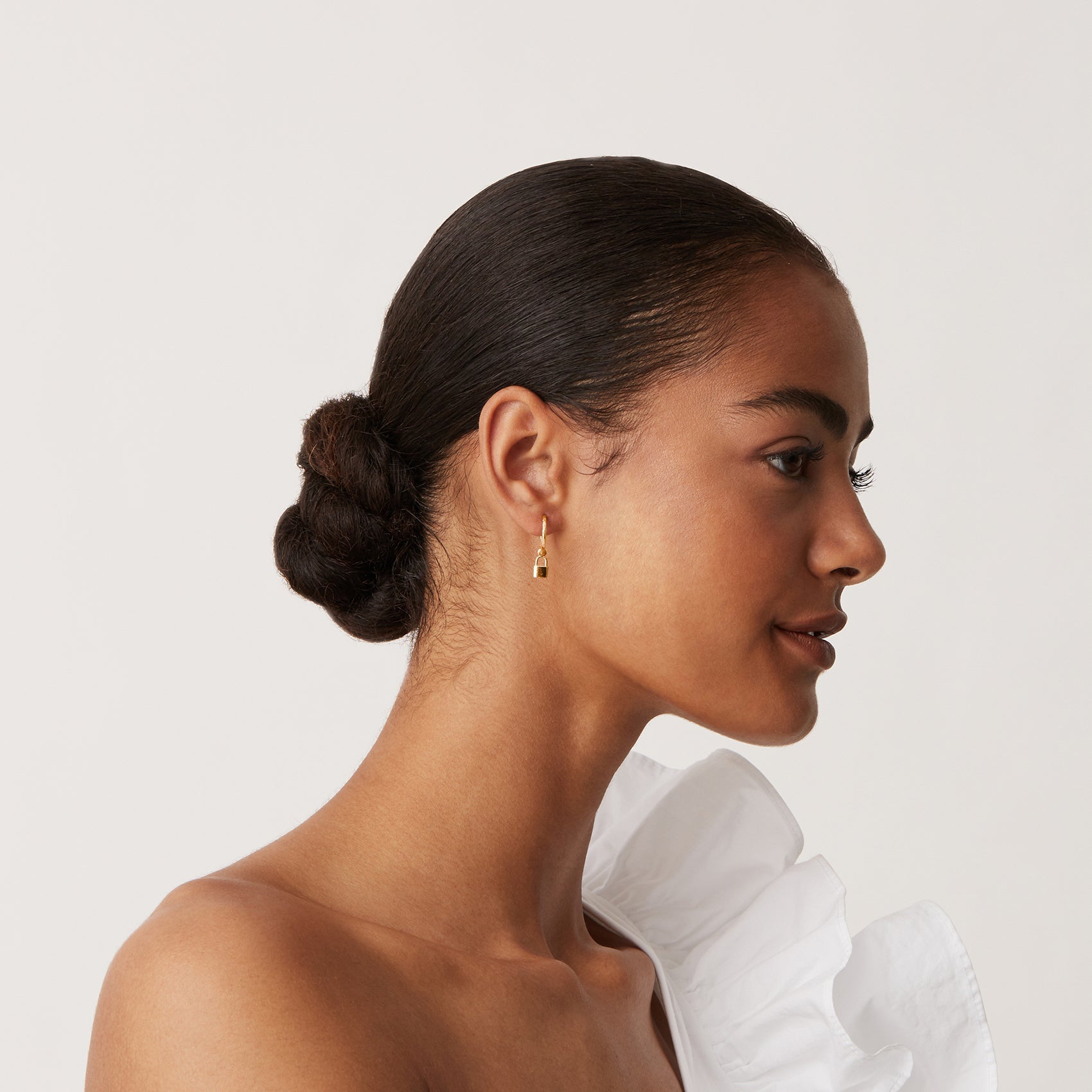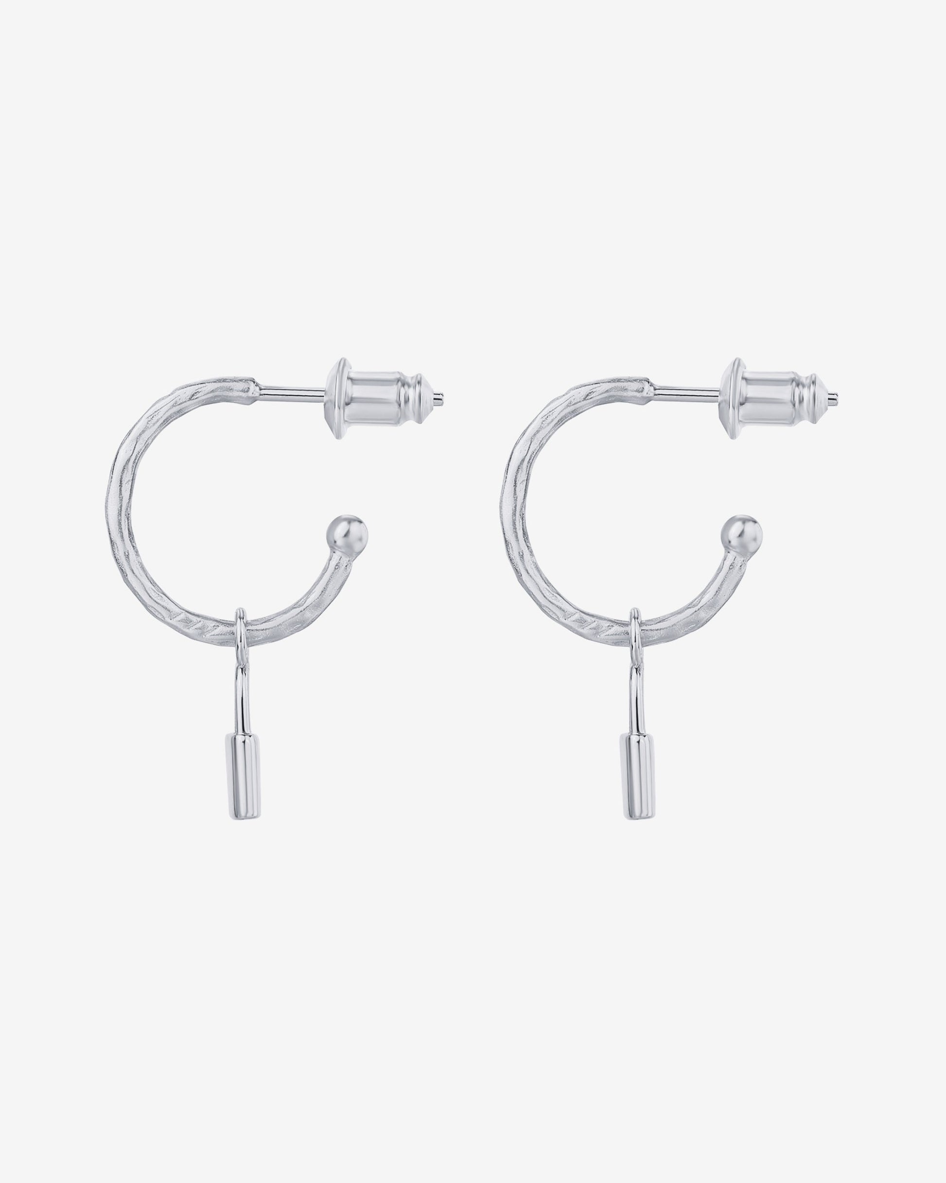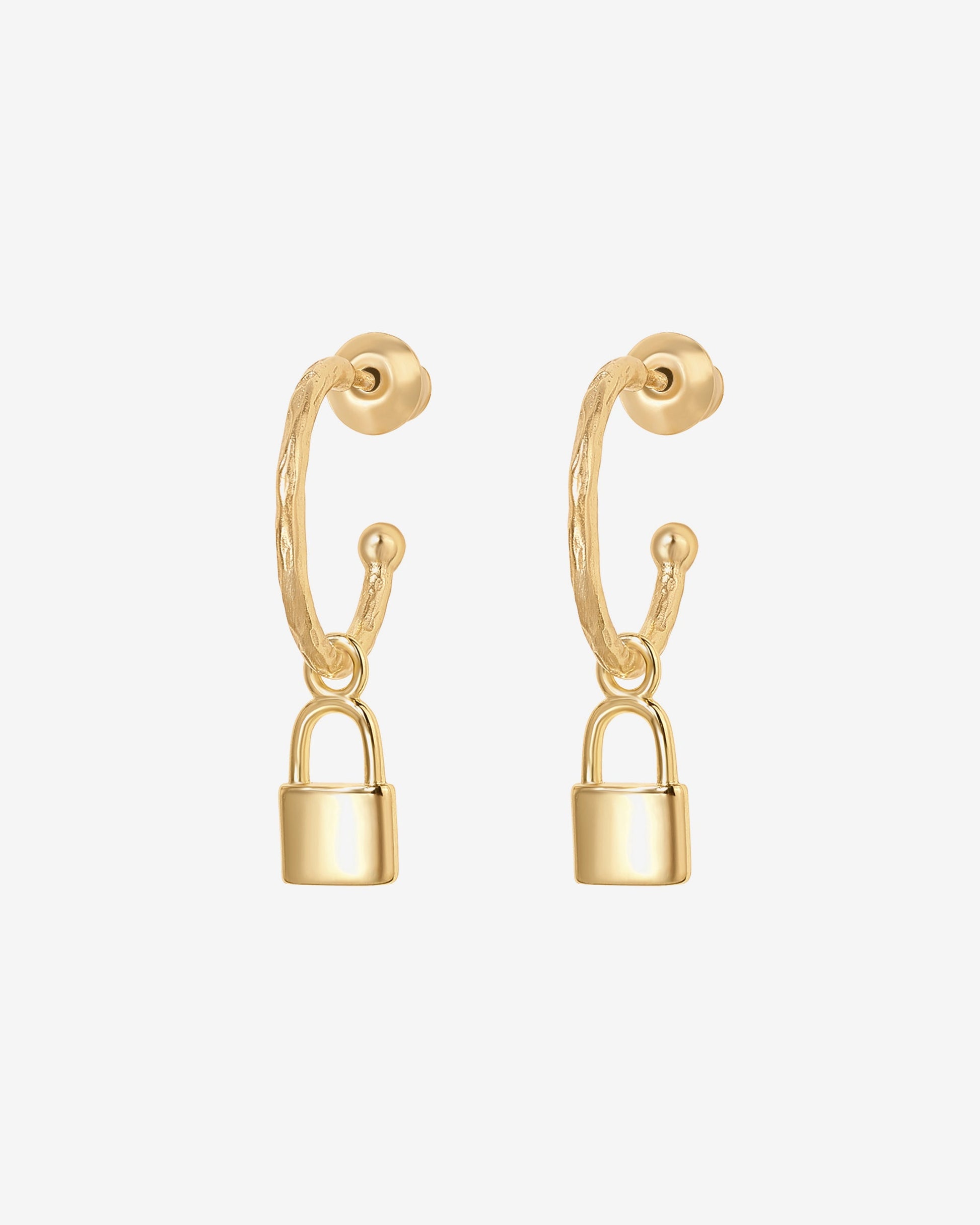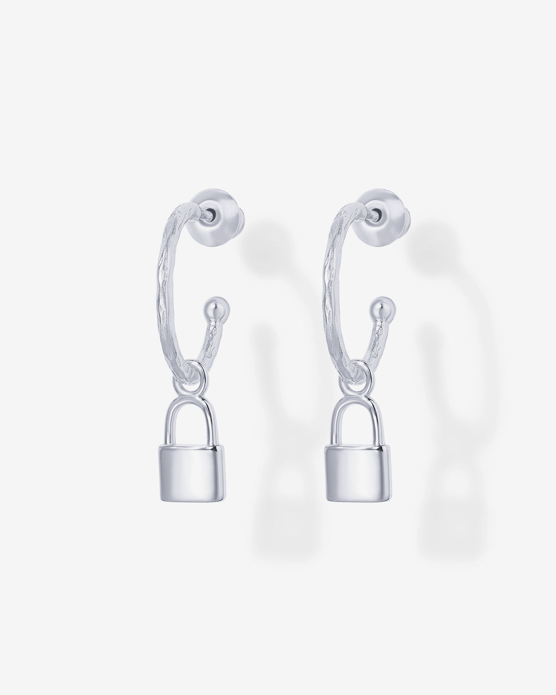 Dangling, sparkling, chic. These PAVOI 14K gold-plated huggies with 925 sterling silver posts, a lock dangle, and hammered texture blend beautiful craft and on-trend styling. The perfect small hoop earrings with posts, these trendy dangle hoop earrings will be your new favorites.