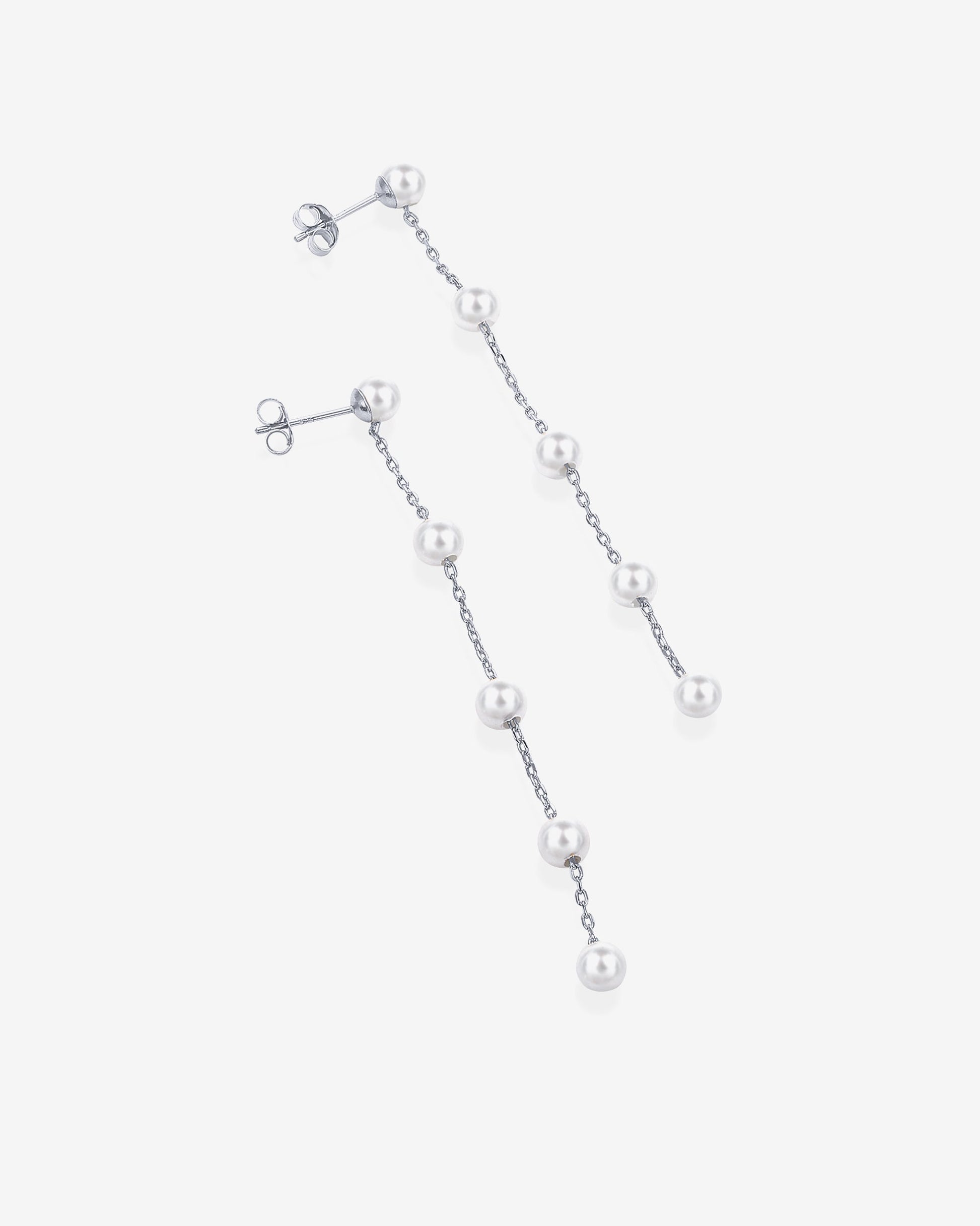 Pearls never go out of style, so we added 5 to this dangling drop earring pair for the ultimate symbol of modern sophistication. Hypoallergenic, durable, and versatile to elevate any special-occasion look.Earring length: 3"Mother of Pearl size: 5mm