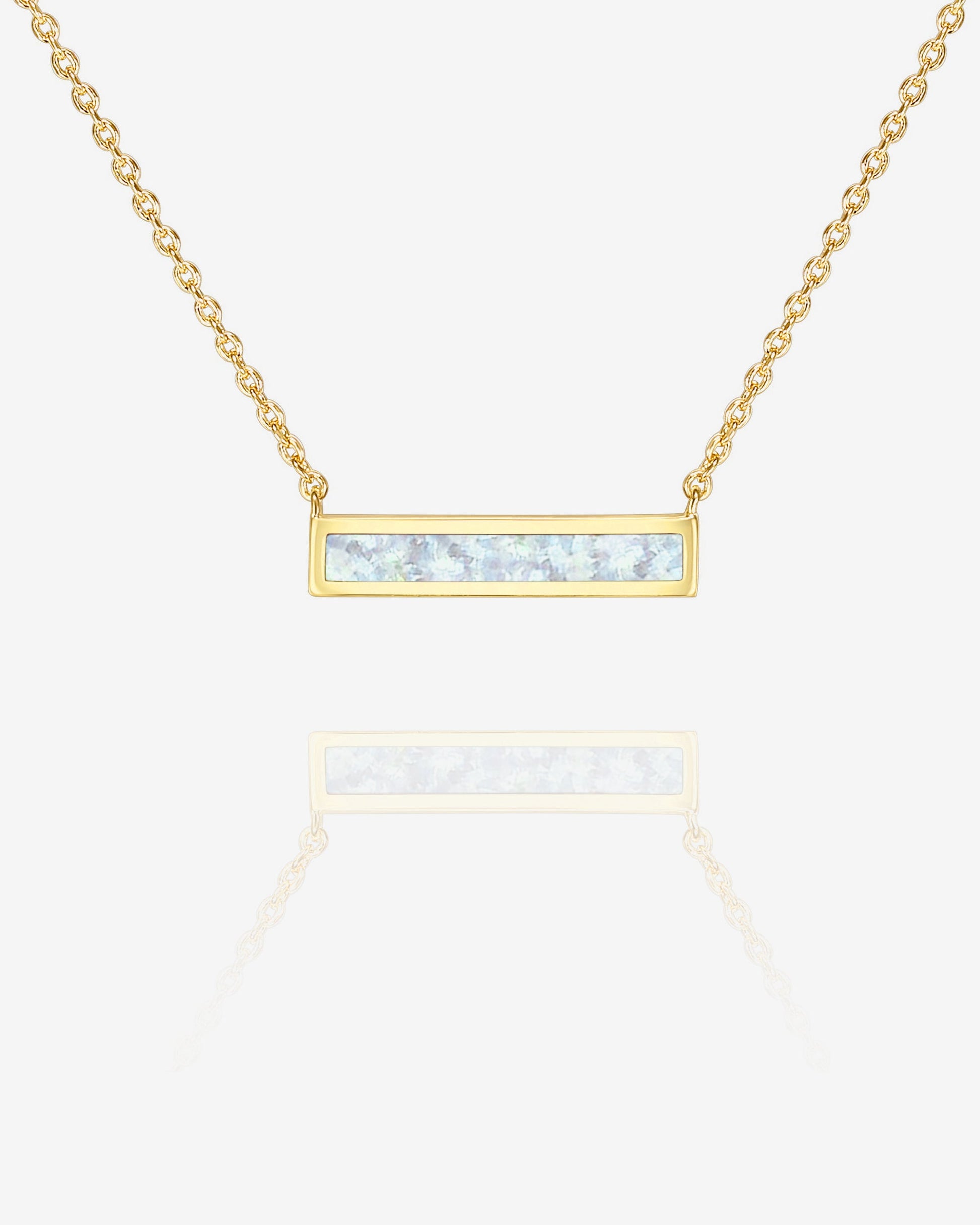 Be mesmerized by our opal bar necklace. With an iridescent created opal set off by a high polish bezel, this pendant is rich and elegant.